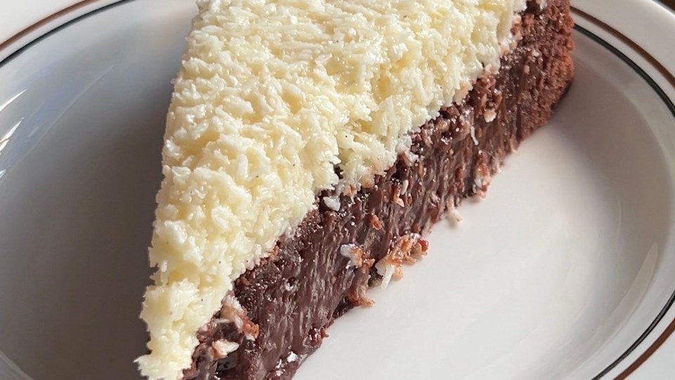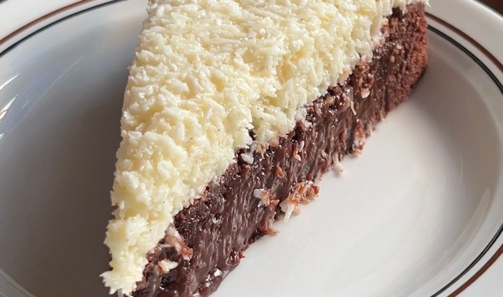 Kladdkaka med tjockt lager av krämig kokos (bountykladdkaka)