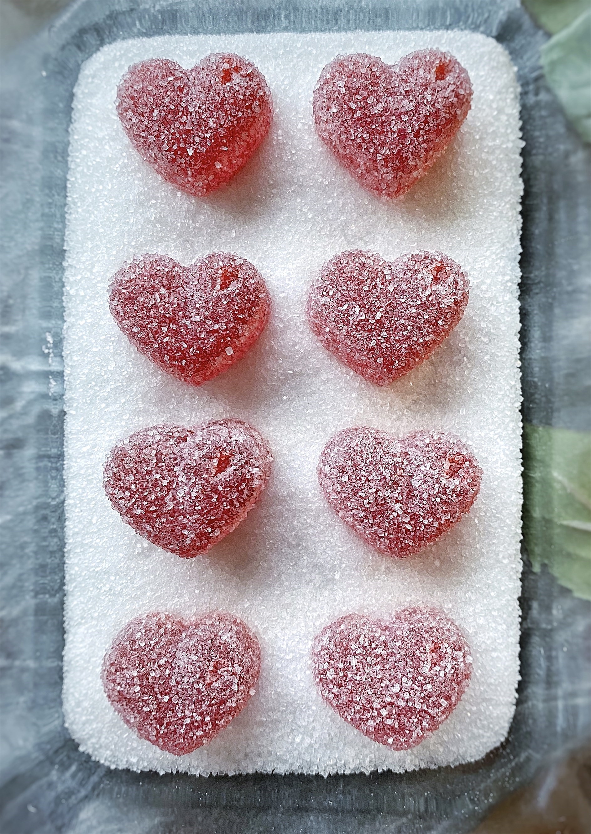 8. Tryck ut dina hjärtan ur silikonformen och doppa i socker. Sedan är det klart! ❤️