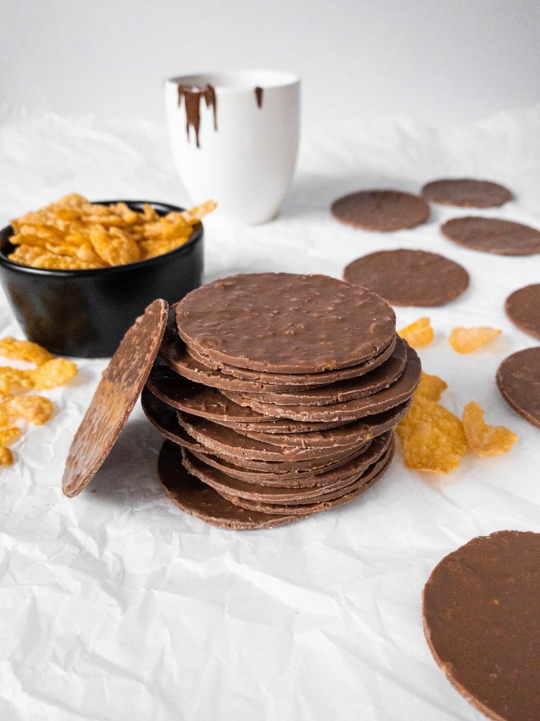 Ni vet Noblesse, de där lövtunna chokladplattorna med krisp i? De har alltid varit en favorit hos mig, och jag kan utan problem äta upp en hel ask själv. Jag blev sugen på att testa att göra egna Noblesse, och när jag läste baksida av förpackningen så stod det att det är mjölkchoklad med majscrisp. Så jag tänkte att det måste vara cornflakes, och efter att ha gjort dessa så kan jag säga att det här smakar identiskt med originalet. Så sinnessjukt gott, och så enkelt!