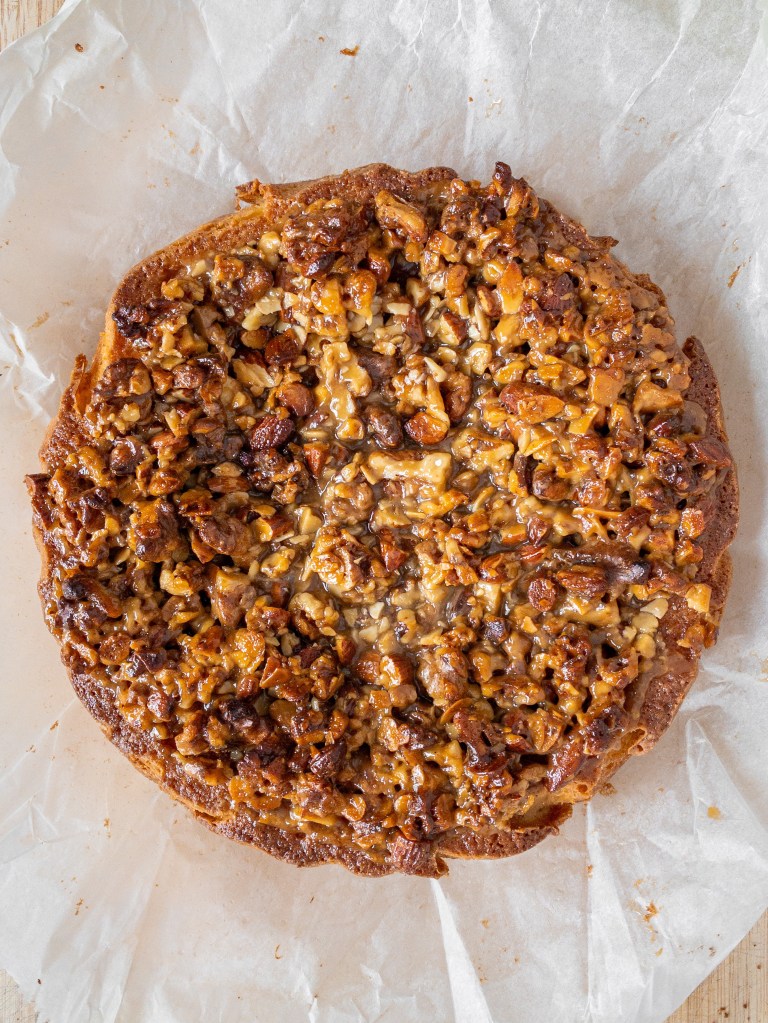 Den här kakan är enkel att baka och man kan välja fritt mellan vilka nötter man vill ha i själva toscasmeten. Det vanligaste är nog att ha hyvlad mandel, men jag gillar att välja lite olika nötter och den här gången blev det en blandning mellan valnötter och mandel som jag grovhackade. Tycker kakan får ett finare utseende när nötterna är lite större samt att det bidrar med en härlig textur.