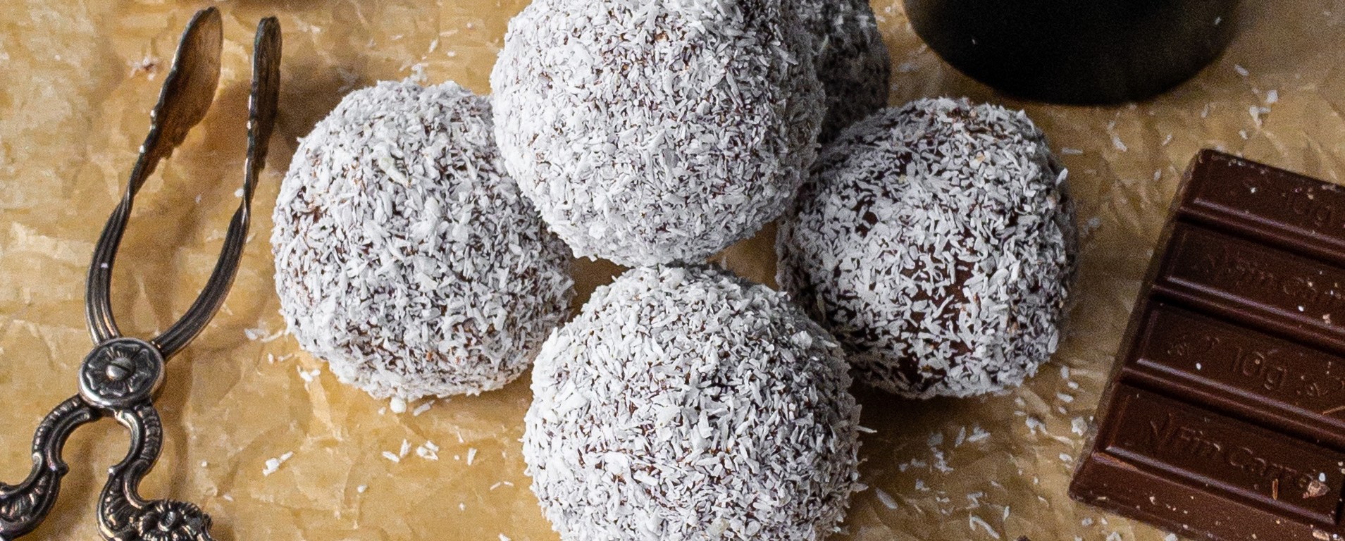 - Rulla bollarna direkt i kokos/pärlsocker innan chokladen stelnar.