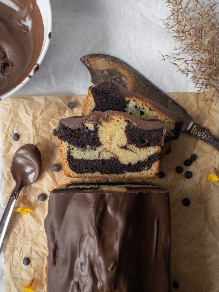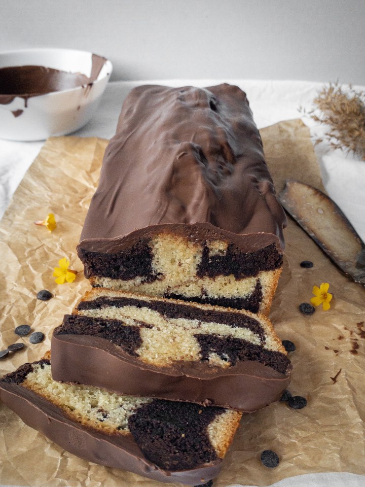 Tigerkaka, en mjuk kaka som jag älskar. Det är alltså en sockerkaka där en del av smeten smaksätts med kakao. Så himla gott, och visst blir det vackert med det marmorerade mönstret?