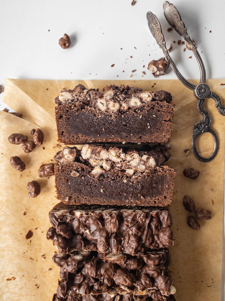 En supergod chokladkaka som är som en blandning mellan brownie och kladdkaka i konsistensen, och som toppas med frasiga kinapuffar täckta med choklad. Så gott! Busenkelt att göra dessutom.