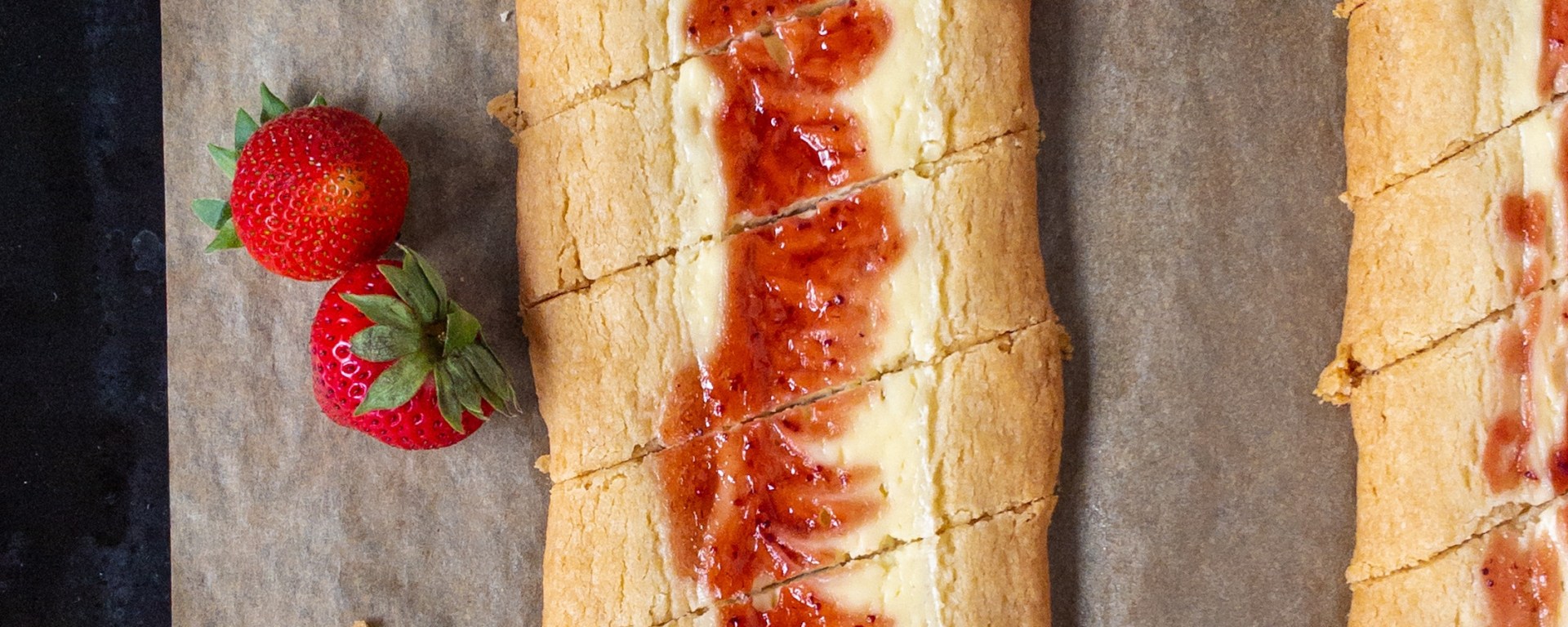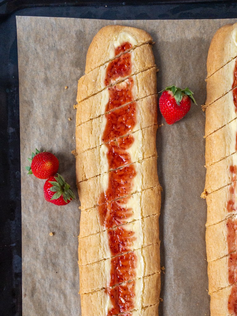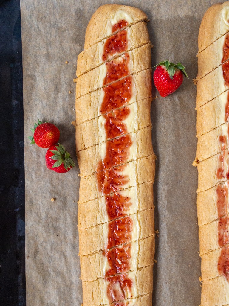 Underbara snittar med cheesecakefyllning och jordgubbssylt. Somrigt och helt gudomliga!