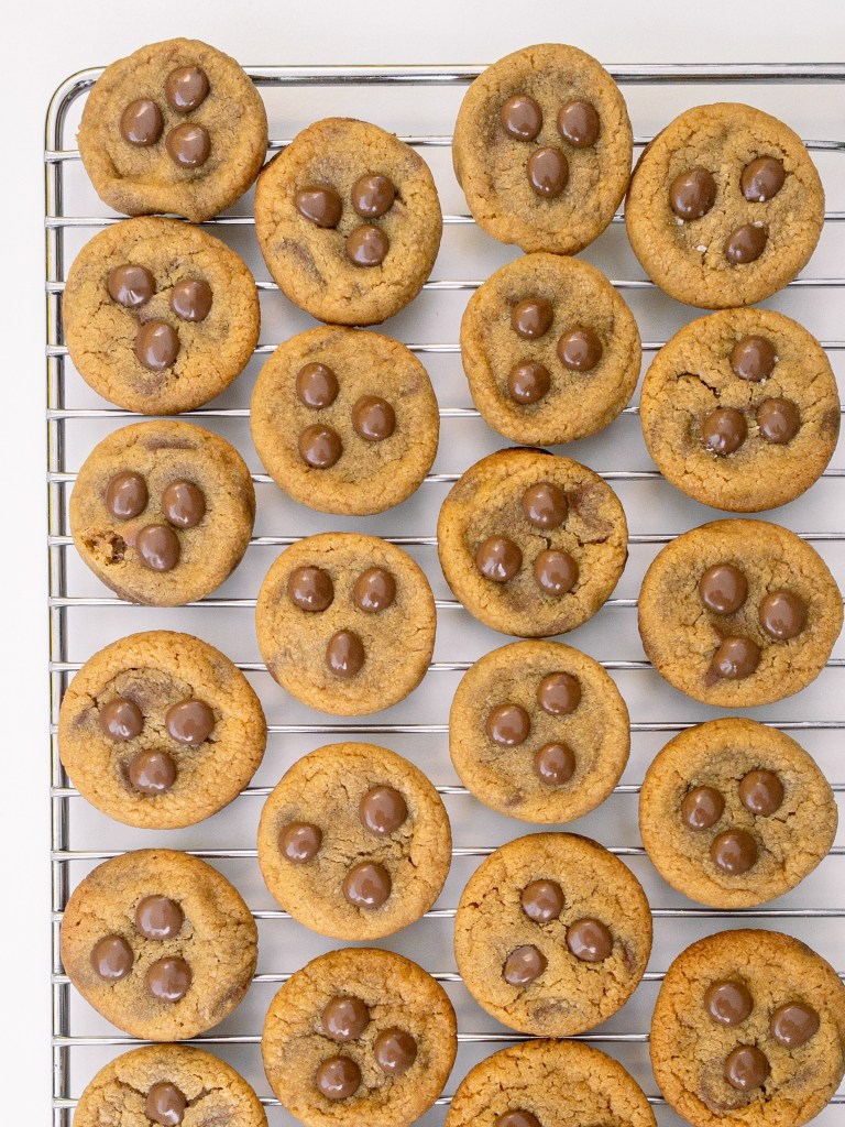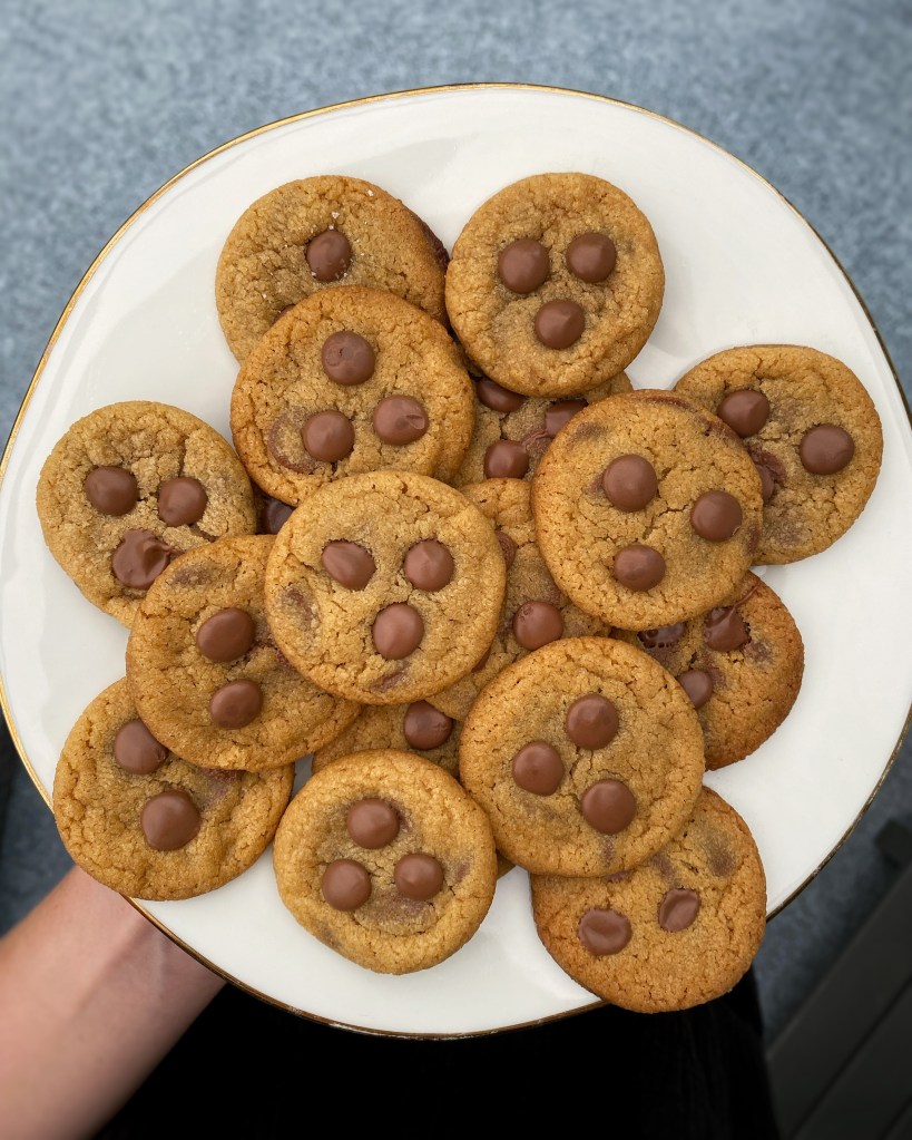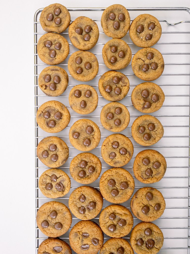 Älskar ni också chocolate chip cookies? Det gör iallafall jag, och jag älskar att ha massor av godsaker hemma som man kan gå och ta av när sötsuget slår till. Därför gjorde jag om mitt klassiska recept på chocolate chip cookies (som för övrigt är det BÄSTA receptet, HÄR hittar ni det receptet) till ett recept som passar bättre till mini cookies. Varför? Dels för att det är jättetrevligt att ha burkar fyllda med mini kakor, men framför allt för att dessa är ”bite-size” så att man kan äta hur många eller hur få man vill.