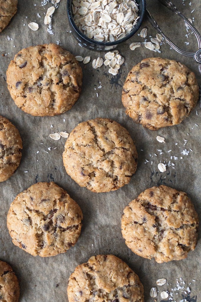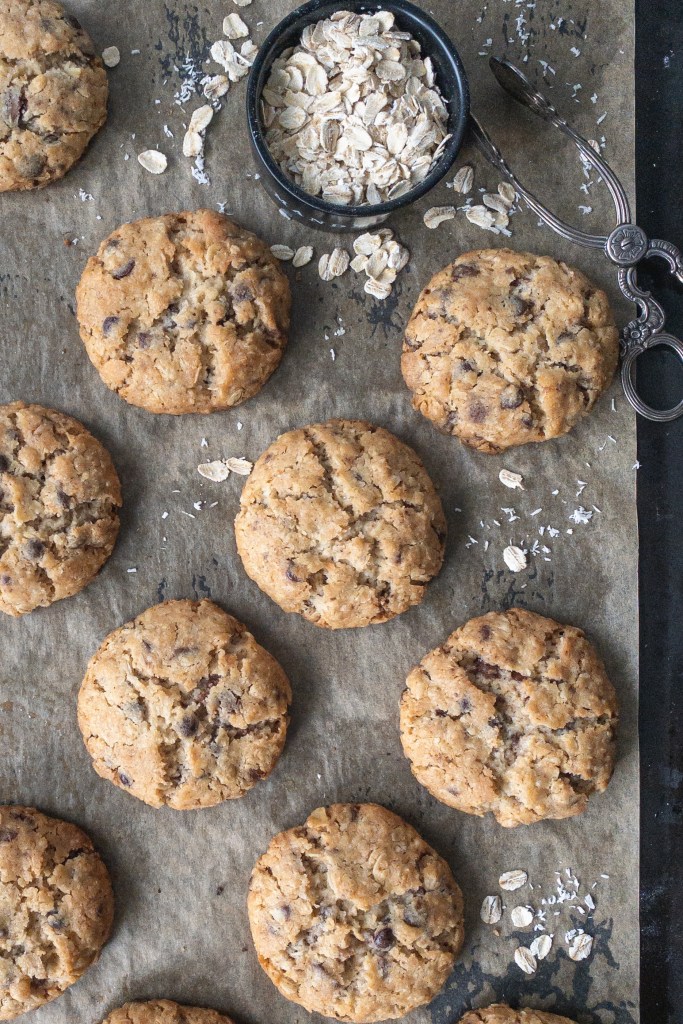 Världens godaste havrecookies med kokos och choklad. Knapriga/crunchy och den rivna kokosen ger kakorna lite ”seg” konsistens, samt att kakorna innehåller massor av bitar av grovhackad choklad. Så sjukt gott! 100% beroendeframkallande.