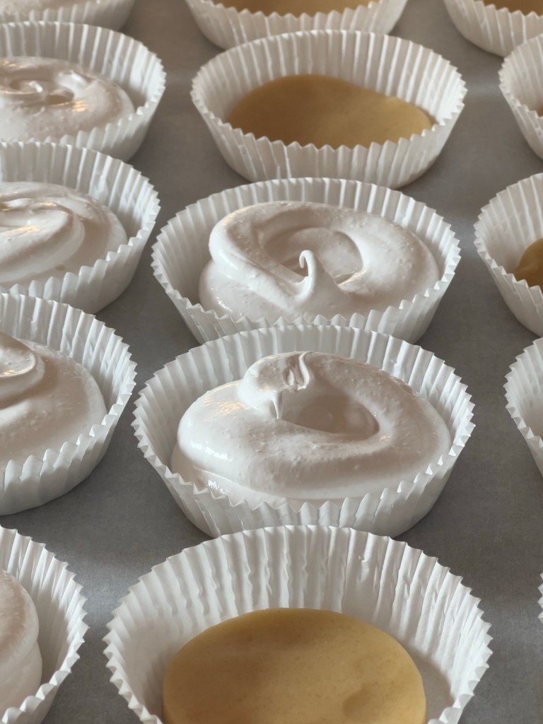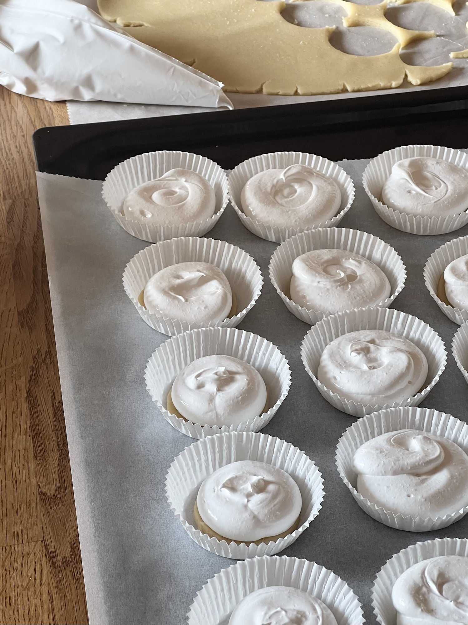 - Spritsa eller lägg en generös mängd med maräng på mördegen.