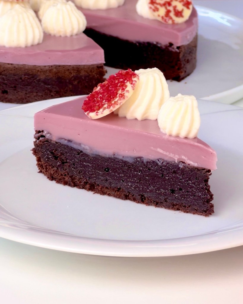 Ljuvlig kladdkaka med hallonganache. Så gott! Den chokladiga kladdkakan ihop med den söta och fruktiga ganachen funkar så fint ihop.